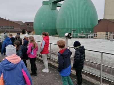 „Hier stinkt’s aber richtig!“ So oder so ähnlich klang es bei dem Besuch der Kläranlage der Klassen 4a und 4b. Den Weg des Abwassers aus dem Kanal durch die verschiedenen Reinigungsstufen bis hin zur Einleitung in die Donau zu verfolgen, forderte jedoch nicht nur den Geruchssinn heraus. Zuerst durften wir nämlich ein kleines Wassertierchen unter dem Mikroskop bei seiner „Arbeit“ beobachten. Schließlich tragen einige von ihnen einen nicht unerheblichen Teil zur Reinigung bei. Die Gegenstände, die aus dem Wasser gezogen werden, erstaunten uns alle: von Tennissocken bis Plastiktüten und Essensresten war alles dabei. Dass am Ende das Wasser doch wieder so sauber wird, dass man es in die Donau einleiten kann, war für alle eigentlich kaum zu glauben. Das Highlight der Führung wartete jedoch am Ende auf uns: wir durften die Plattform auf den Faultürmen erklimmen und den Blick über die Landschaft genießen – für viele war das dann doch noch die größere Herausforderung als der Geruch.