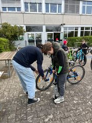 Bei zu wenig Luftdruck im Fahrradreifen durften die Kinder diesen unter Anleitung selbst aufpumpen.