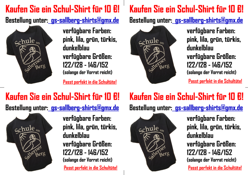Der Elternbeirat der GS am Sallerner Berg verkauft Schul-T-Shirts in verschiedenen Farben und Größen. (855,7 KiB)